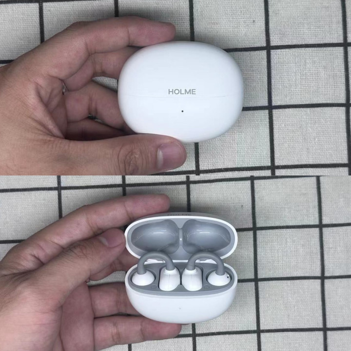 虹觅Air2:这款耳机戴在耳朵上几乎没什么存在感。耳机采用前高后低的2.5mm错位设计,能恰好贴合耳朵形状,让佩戴更稳固;电池部分做成12°弧面耳托,完美贴合耳背,进一步提升了贴合度与舒适度,戴再久也不会有夹耳朵的感觉,而且单耳仅重4.5g。